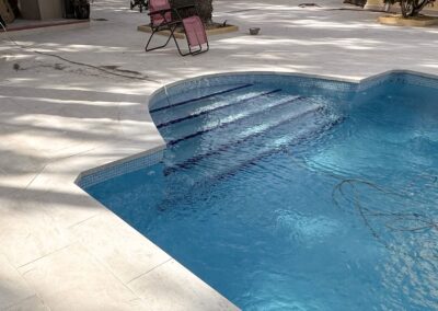We have carried out a stunning transformation for a client who wanted to renovate their old swimming pool, removing the outdated mosaic tiles, levelling the terrace to a single level around the pool, and upgrading essential equipment.
